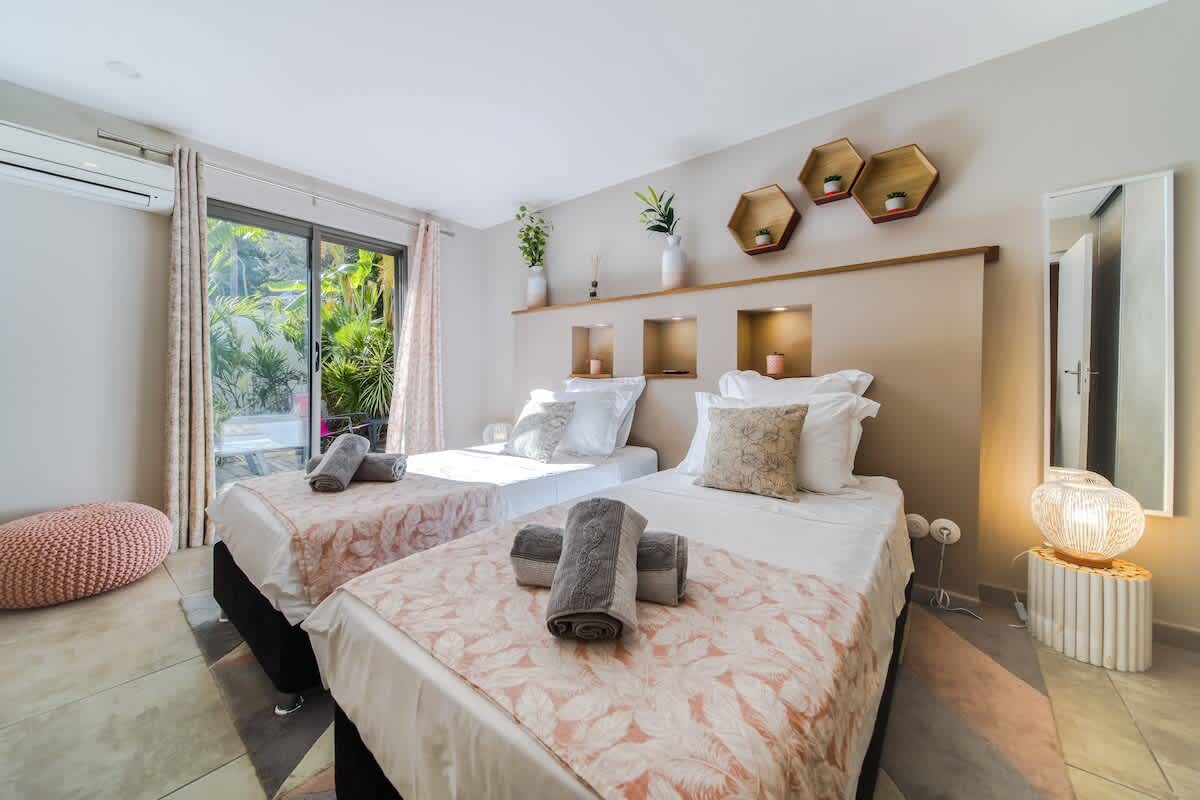 Welcome to Kaz Adonidia. Located in La Saline Les Bains, a stone's throw from its splendid lagoon, this welcoming villa has all the equipment you need to have a pleasant and comfortable time. Enjoy its natural stone spa and tropical garden for your stay in peace, in the shade of adonidia palms, casuarinas and lulled by the trade winds.