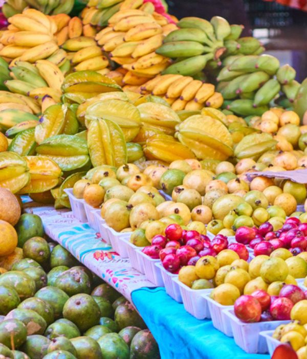 Les marchés locaux et les étals débordent de couleurs et de saveurs exotiques. Mangues, letchis, goyaviers, bananes, papayes, ananas, caramboles, et bien d’autres encore.