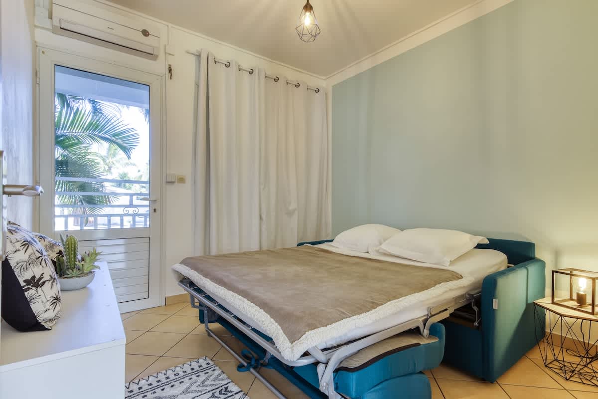 La chambre double avec son lit queen-size, vous éblouira par sa luminosité. Vous trouverez également un grand dressing pour y ranger vos affaires le temps du séjour. La seconde chambre est meublée de 2 lits jumeaux (Les lits peuvent être rapprochés). Vous pourrez bénéficier d’une troisième pièce qui s’adapte à vos besoins, comme salle de jeux pour les enfants mais également comme une chambre d’appoint grâce à son canapé-lit confortable pour deux personnes.