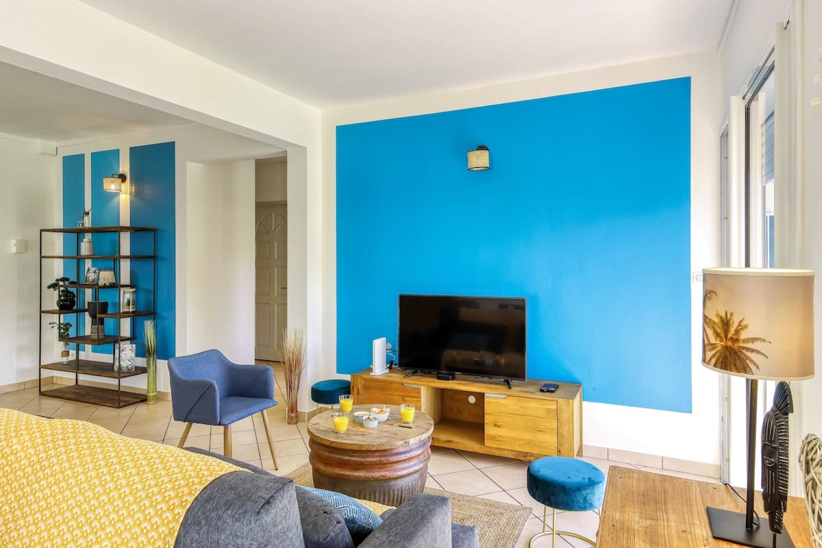 Très bon logement, à proximité du lagon, toutes les commodités accessibles à pied ( supermarché, restos, boulangerie). Logement spacieux, nous étions 5 dont un bébé et nous avions largement de la place. Le jardin est grand et agréable, la terrasse aussi, parking fermé pour la voiture. Tout était propre et les équipements étaient tout à fait à la hauteur de nos attentes, il ne manquait rien pour passer un bon séjour. La rue jouxtant le jardin est très passante en journée, mais une fois porté et fenêtres fermées, c’est assez calme, on entend néanmoins la circulation le matin