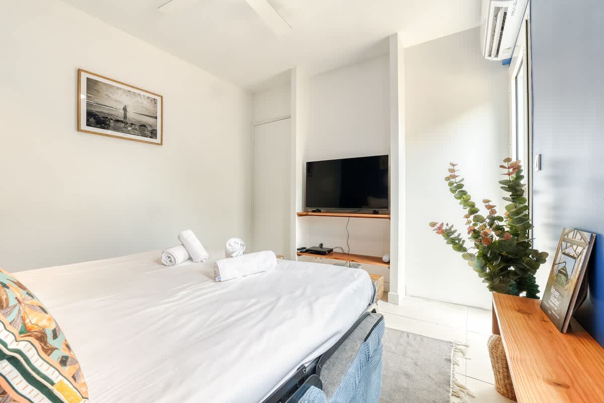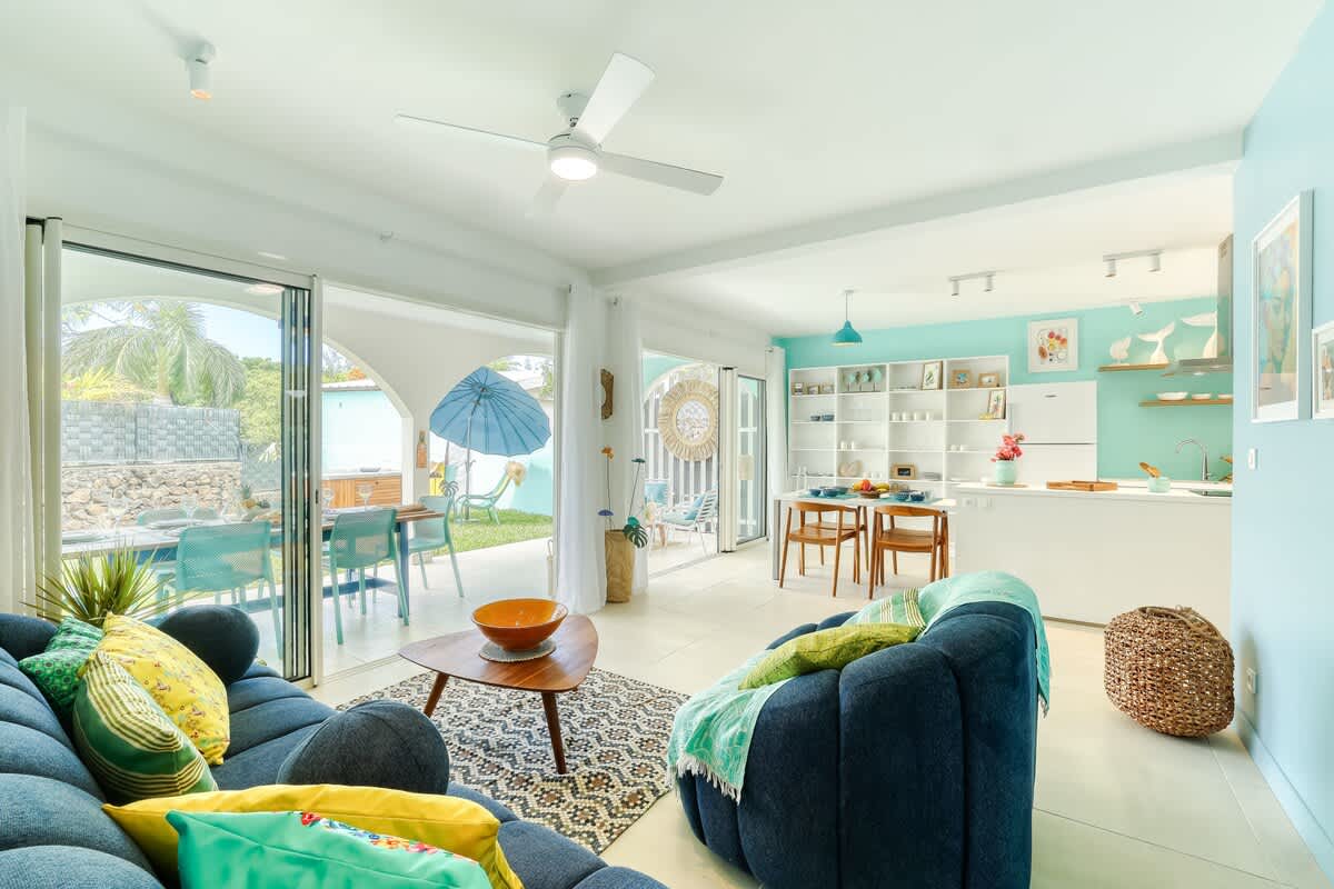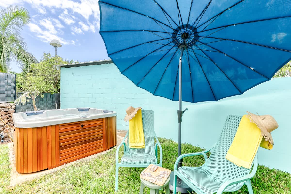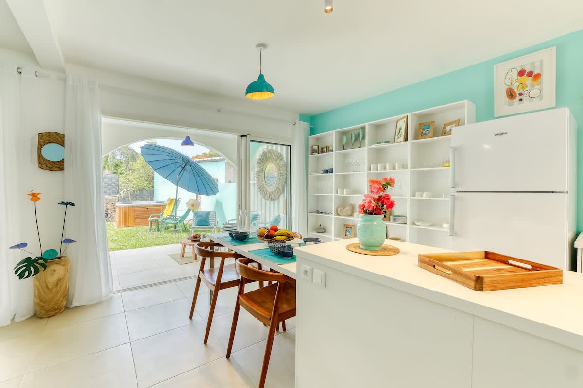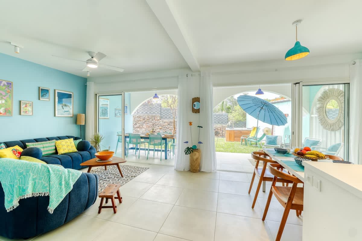 Logement conforme à la description, rez de villa très propre, spatieux, très bien équipé. Accès au jacuzzi (il manquerait juste une petite marche pour y accéder). Literie très confortable, terrasse très agréable. Entretien du jardin et du jacuzzi pendant le séjour. Logement parfait pour des vacances au soleil, plage du trou d'eau accessible à 2min à pieds, plusieurs très bons restaurants à proximité. Échanges faciles avec l'hôte.