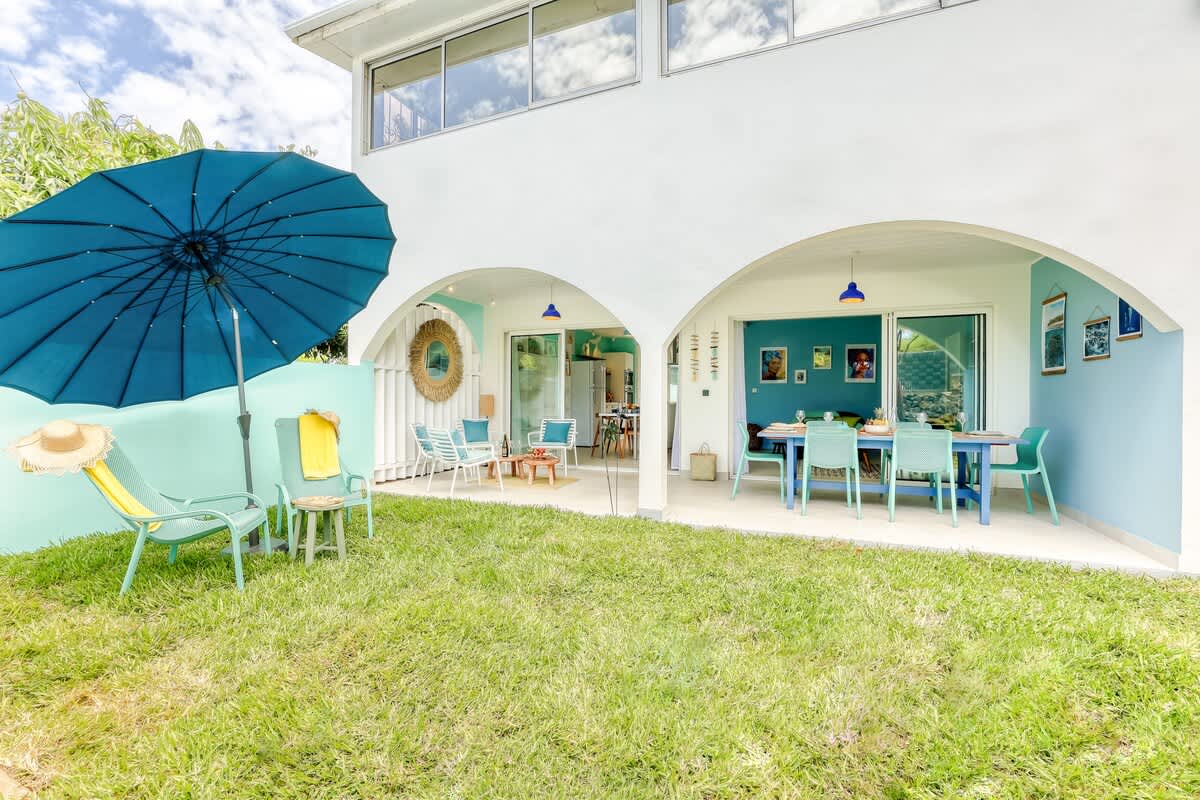 - Extérieur : Grande varangue avec salon de jardin et espace repas en plein air