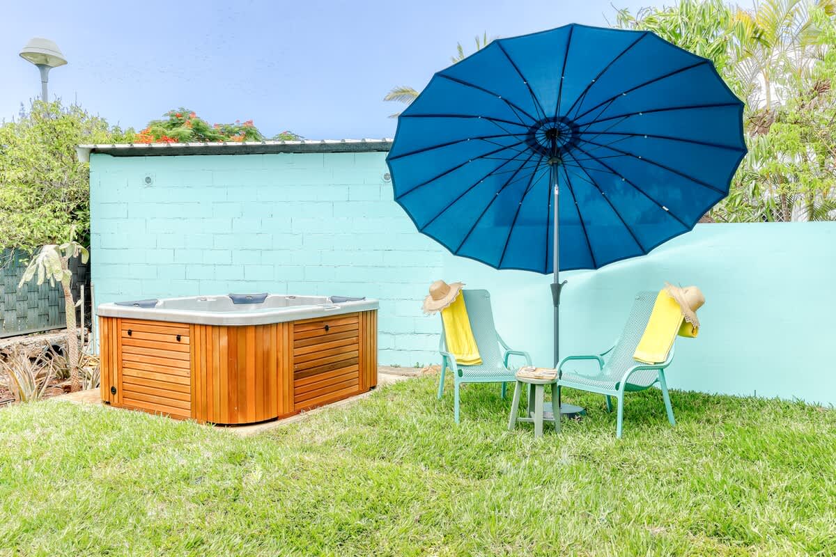 Entièrement équipée, elle offre également tous les équipements nécessaires pour un séjour agréable. Sa belle varangue donnant sur le jardin et son spa privatif vous permettront de profiter pleinement de l'extérieur. Installez-vous dans le jardin et laissez-vous tout simplement bercer par le doux son de la houle australe venant s’échouer sur la barrière de corail. Tout proche du bord de mer, le lagon est accessible à pied et se trouve à seulement 150 m de la villa.