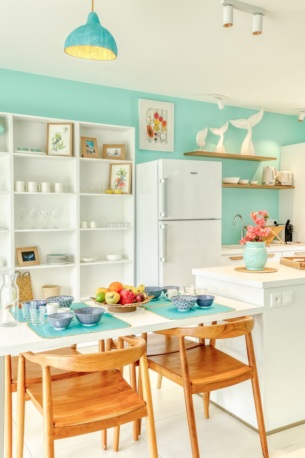 - 1 cuisine fonctionnelle toute équipée avec un ilot central pour préparer vos repas