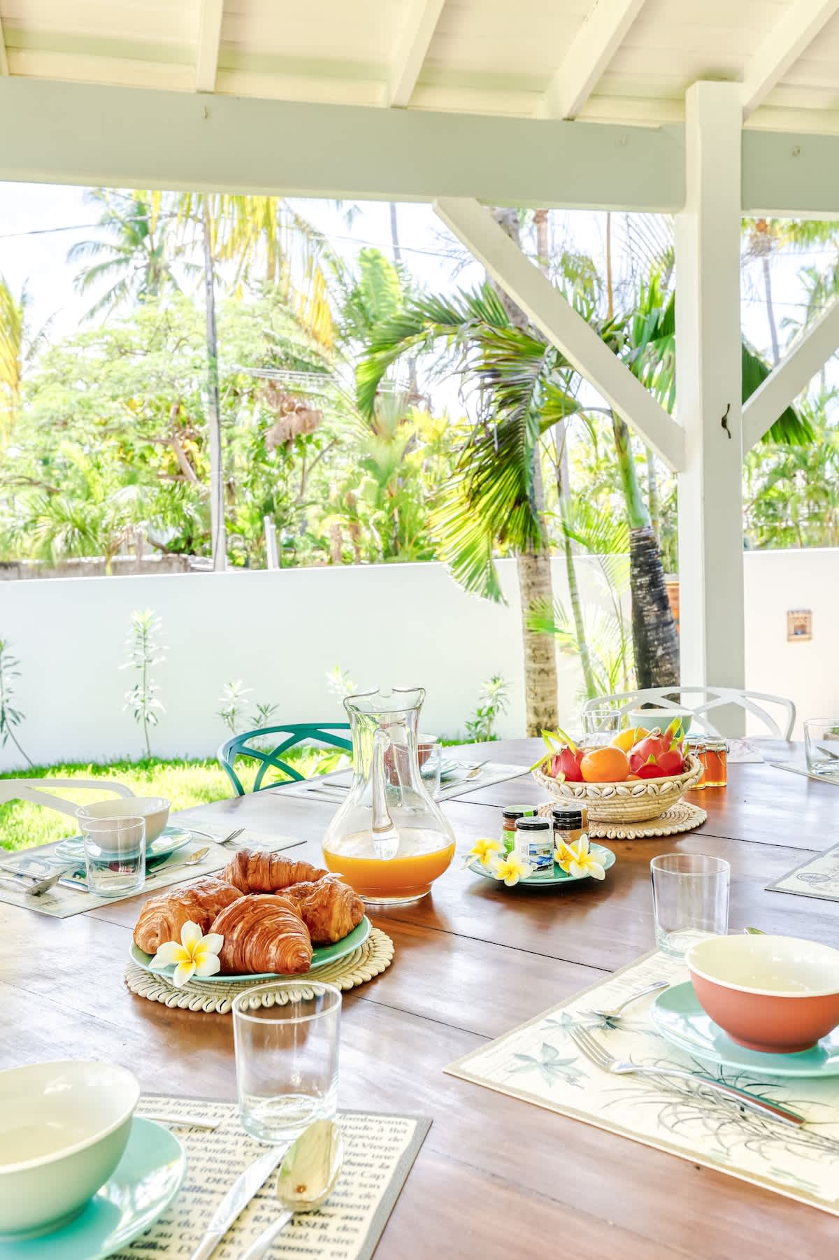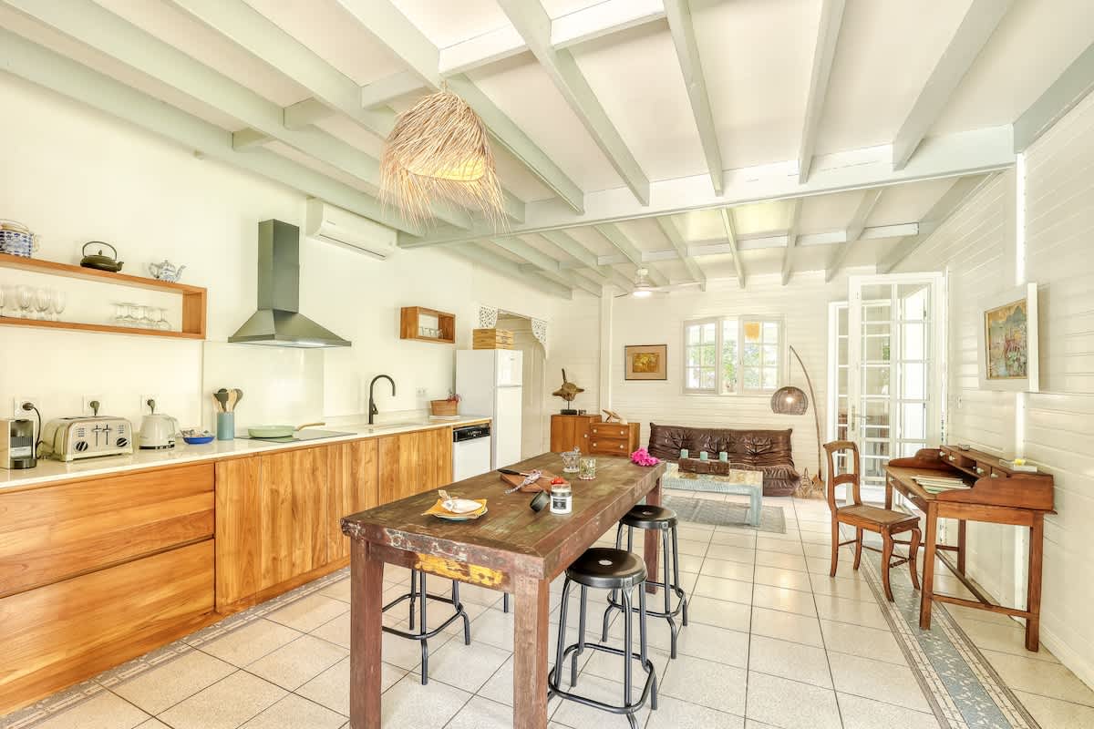 Ambiance chaleureuse, décor bois et esprit marin, mariant charme créole et douceur océanique.