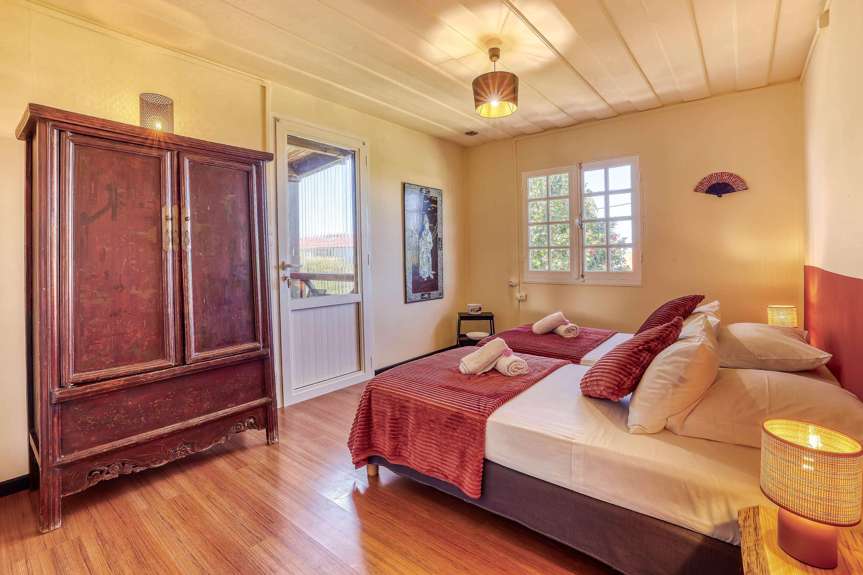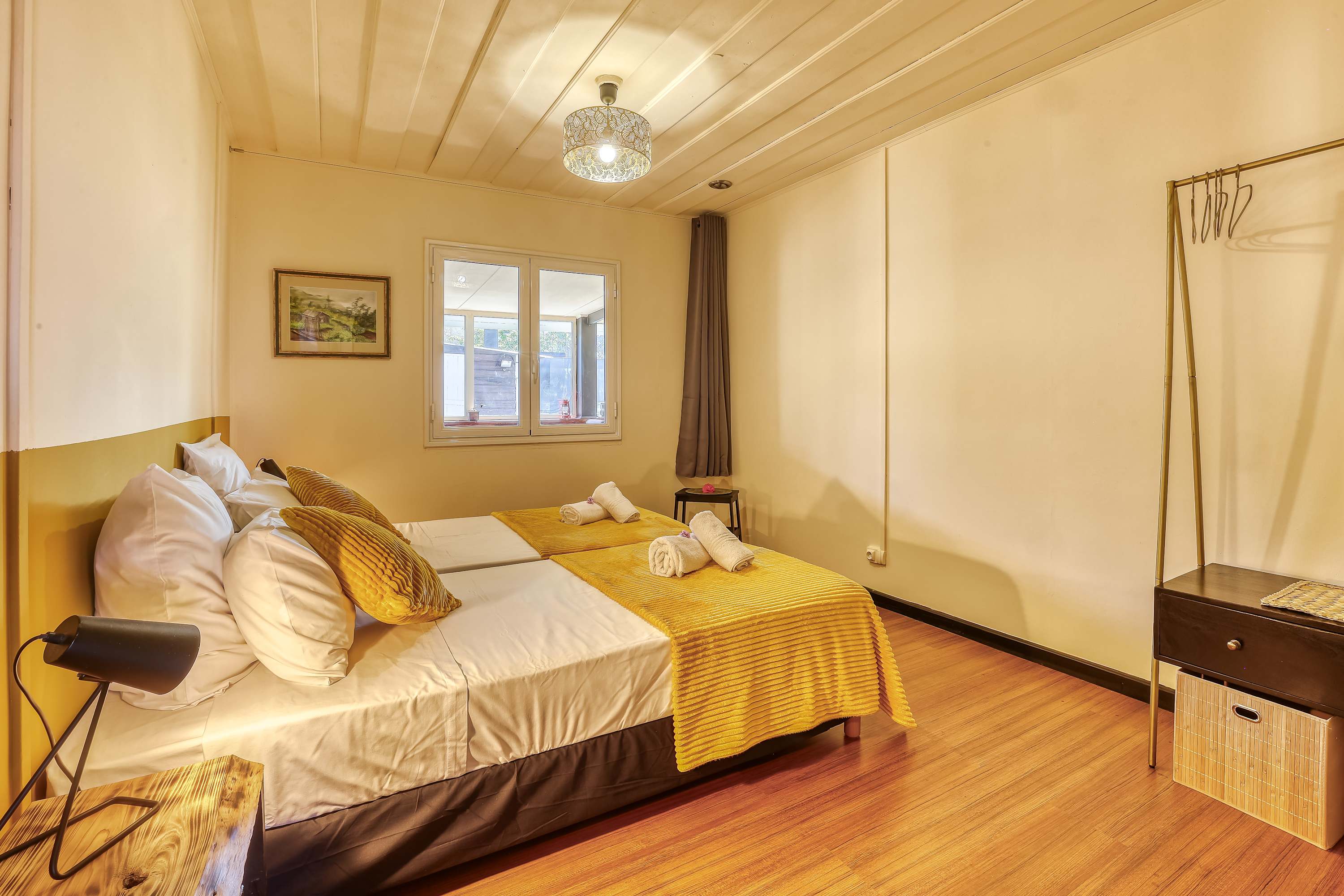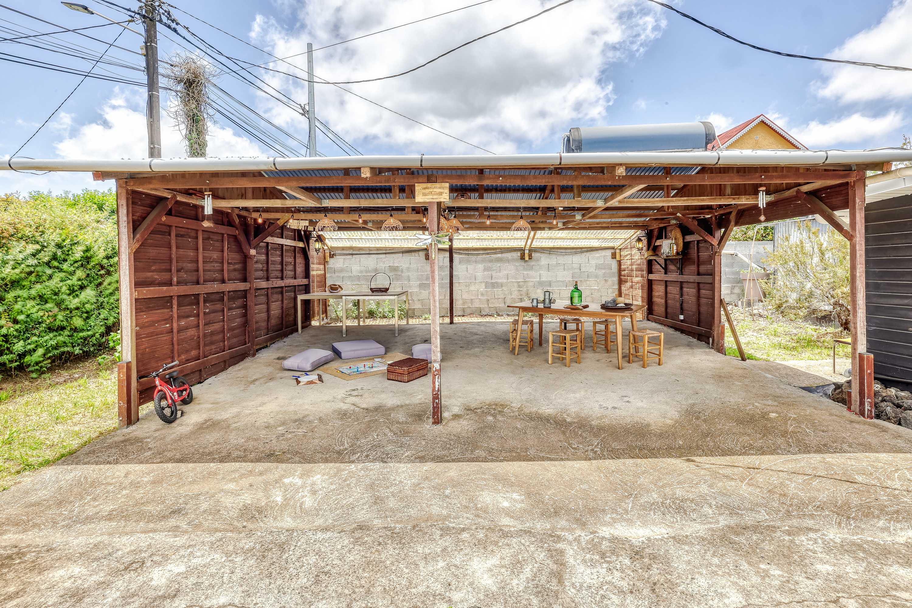 La Jolycya, une jolie kaz créole métissée, aux airs de chalet, vous propose un espace idéal pour des vacances en famille ou entre amis pour 6 6 personnes : A l’intérieur : - Le grand espace de vie coté jour se compose de: . 1 grande cuisine de campagne parfaitement équipée . 1 belle salle à manger idéale pour les fondues et raclettes au coin de la cheminée . 1 salon panoramique donnant sur la montagne avec poêle à granulés . 1 espace dédié aux familles : jeux, livres, musique, films - Le coté nuit comprend 3 jolies chambres aux décors inspirés du métissage réunionnais : . 1 chambre "Feu/Asiatique" équipée de 2 lits simples et de rangements . 1 chambre "Solaire/Indienne" équipée de 2 lits simples et de rangements . 1 chambre "Terre/Européenne" équipée avec 1 lit double en 160, 1 berceau et des rangements . 1 couchage d’appoint disponible sur demande (en supplément) . 1 salle de bain spacieuse avec baignoire et 1 WC indépendant A l’extérieur : - 1 grande terrasse avec espace guinguette couverte et brasero - 1 cuisine traditionnelle au feu de bois - 1 jardin médicinal, fruitier et fleuri avec ses poules - 1 vue dégagée sur les contreforts du Piton des Neiges