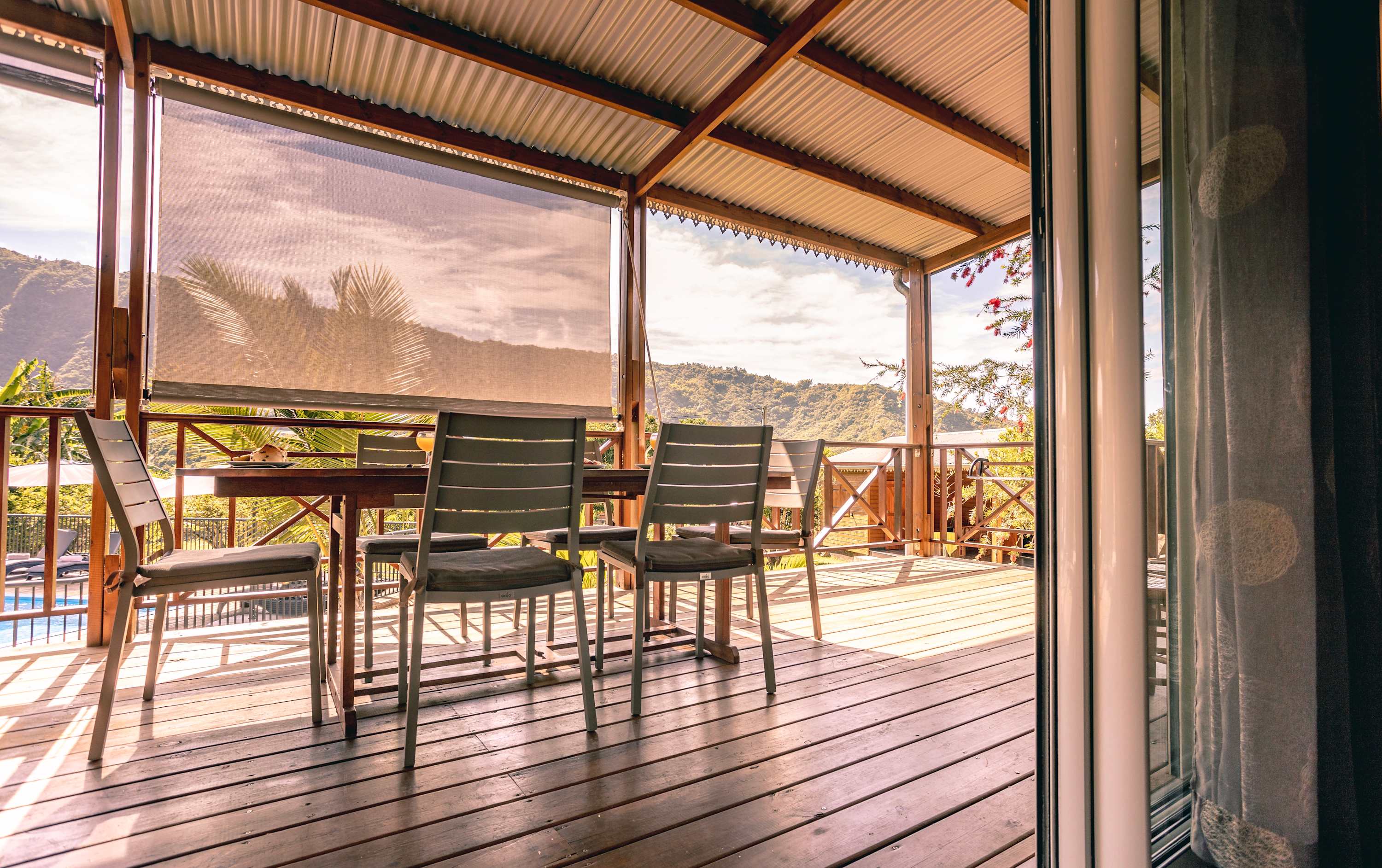 - 1 varangue privative avec salle à manger extérieure et salon de jardin pour chaque bungalow