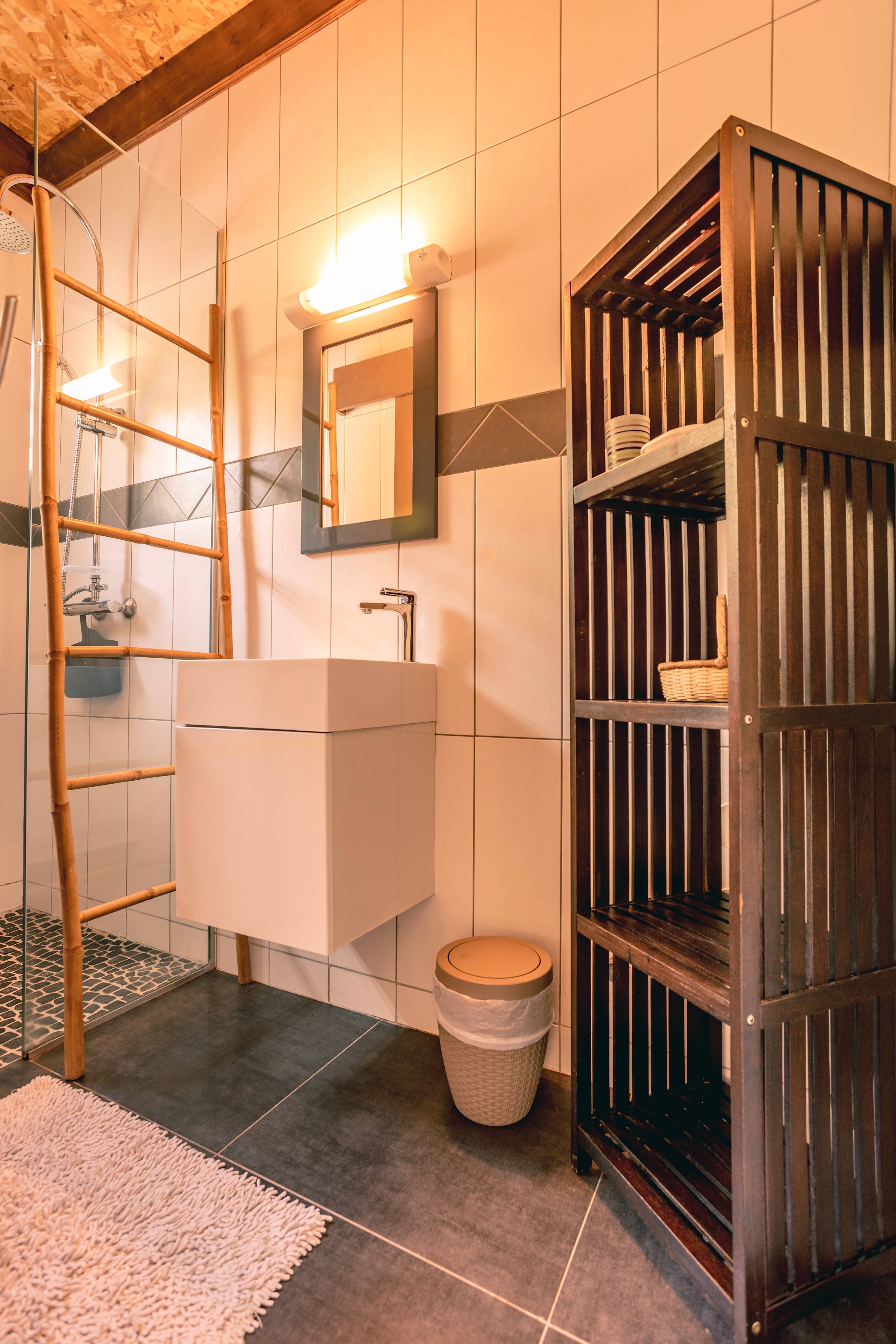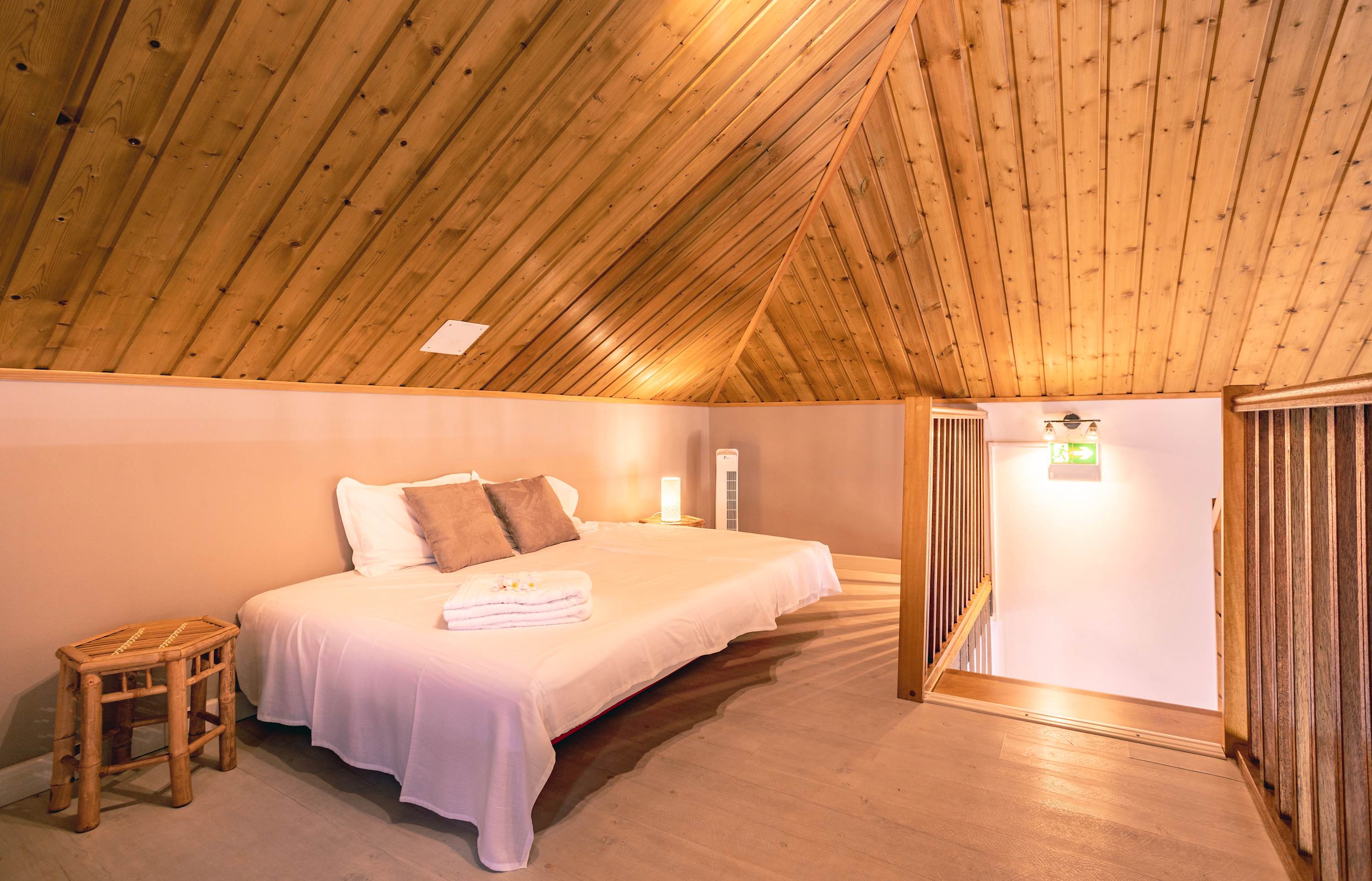 - 1 mezzanine ouverte sur le séjour avec un lit double en couchage d’appoint
