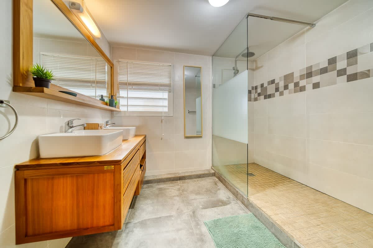 Pour votre confort, la villa offre enfin 2 belles salles de bains avec douche à l’italienne, ainsi que 2 Wc séparés.